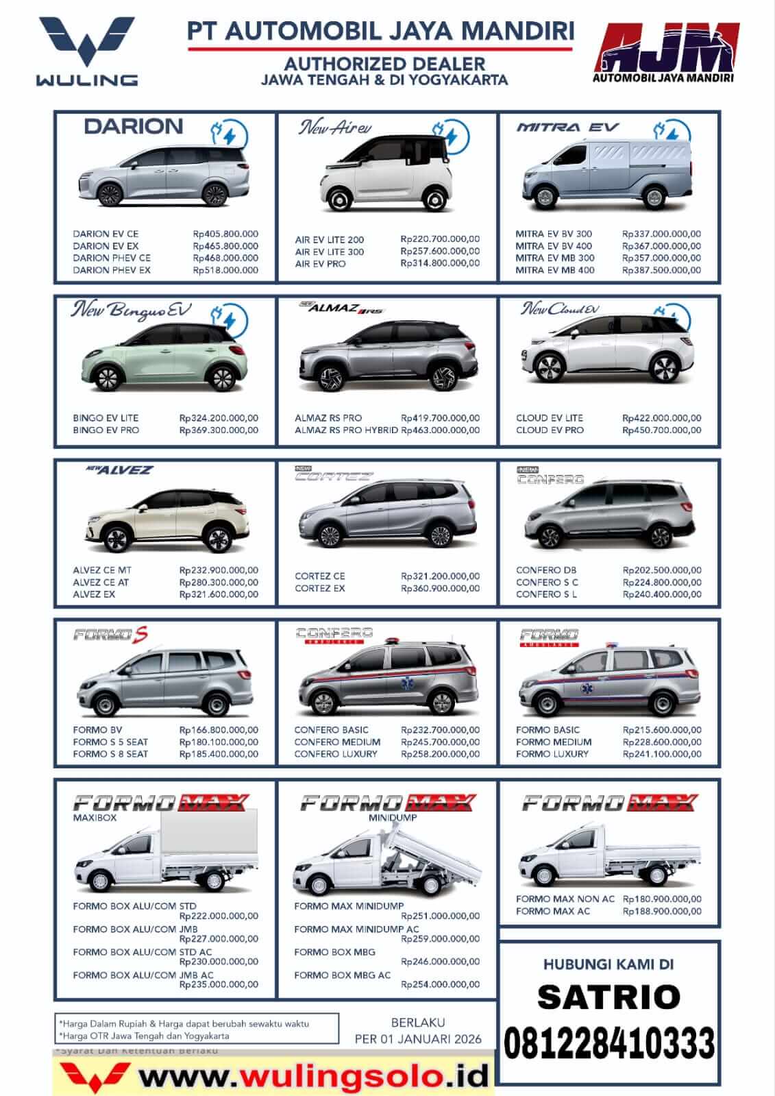 Melayani Pembelian Mobil Baru Wuling Secara Tunia Ataupun Kredit Dengan Harga OTR Terbaru Wuling Solo, Info Promo Kredit Murah Syarat Mudah Proses Cepat. DP Angsuran Murah. Pemasaran Area Solo, Klaten, Sragen, Boyolali, Karanganyar, Wonogiri, Sukharjo Dan Daerah Sekitarnya.